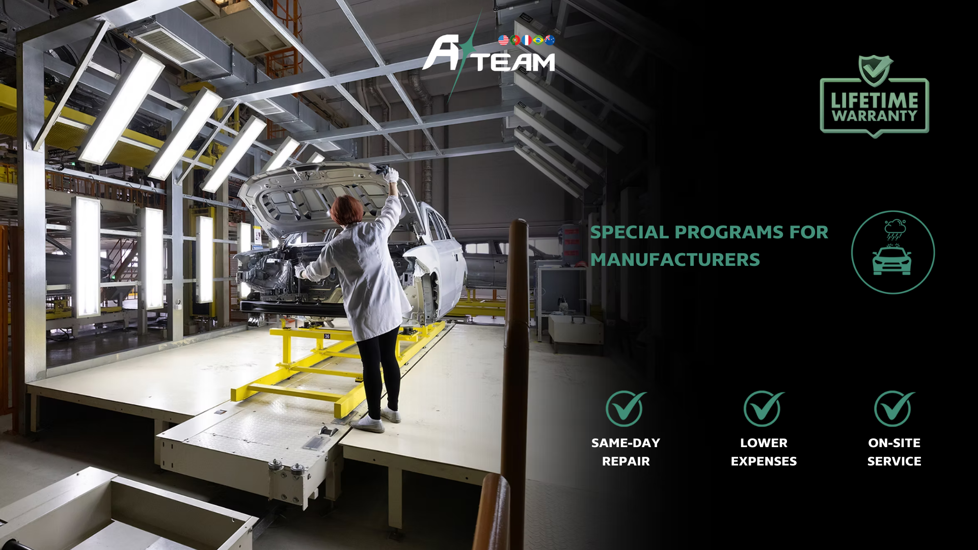 Under the leadership of our CEO, Andrio Rodrigues, A-Team has grown from a family-owned business into a global leader in the PDR industry. For the past 30 years, we have brought our unwavering passion for vehicle care and repair to auto body shops, insurance companies, dealerships, rental car companies, commercial fleets, and manufacturers around the world. Today, we proudly employ over 500 certified and highly trained specialists delivering award-winning, lifetime-guaranteed PDR service.
